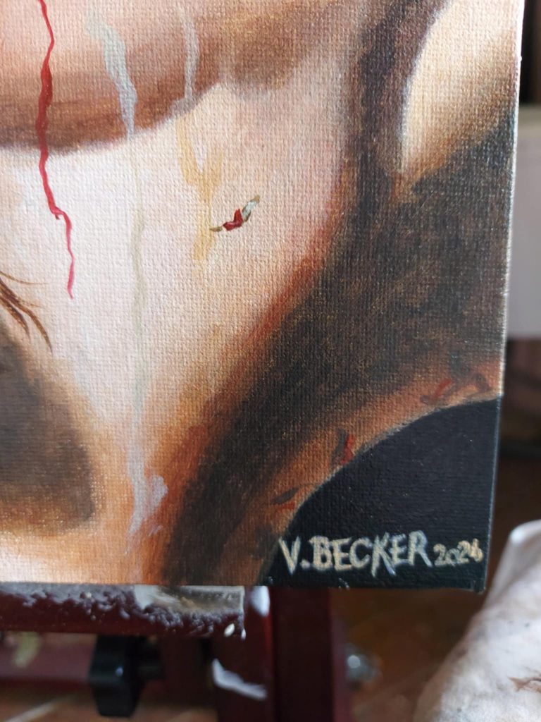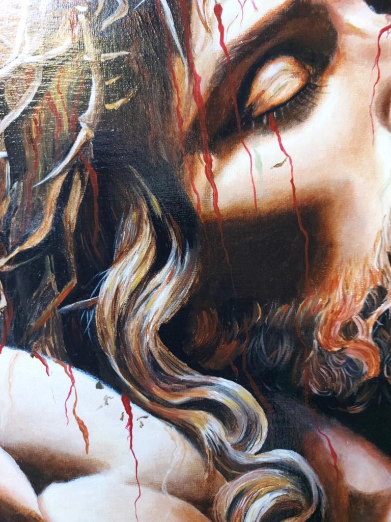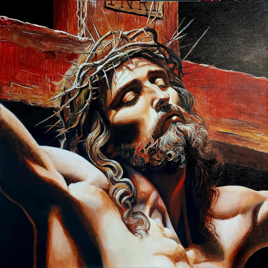Ce tableau, ainsi que STATION 6 « Véronique essuie le visage du Christ », ont été créés pour le CONCOURS INTERNATIONAL du VATICAN 2024/2025, mais ont été envoyés en retard, et puis ont été perdus, retrouvés, et ne sont malheureusement arrivés que trop tard..