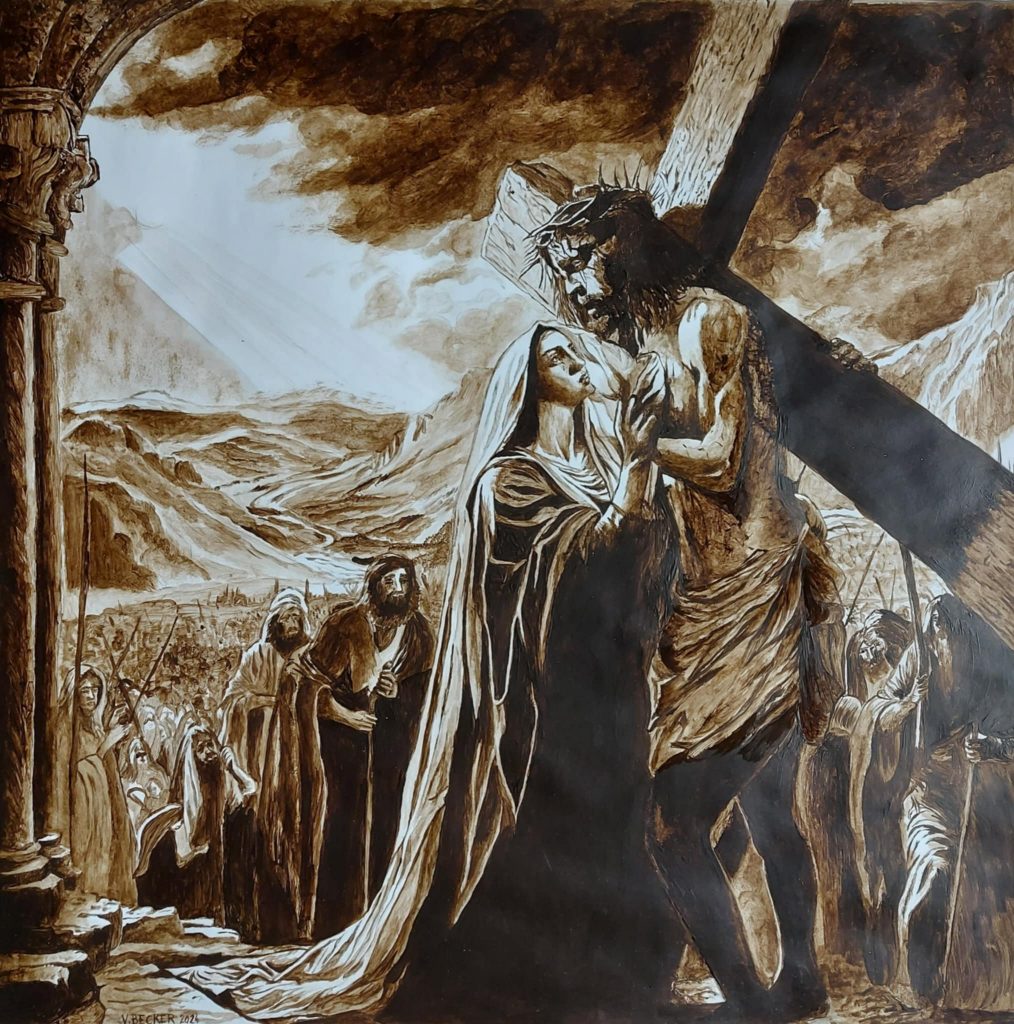 Fait partie des 2 oeuvres envoyées, perdues, retrouvées, arrivées trop tard, au CONCOURS INTERNATIONAL DU VATICAN 2024/2025